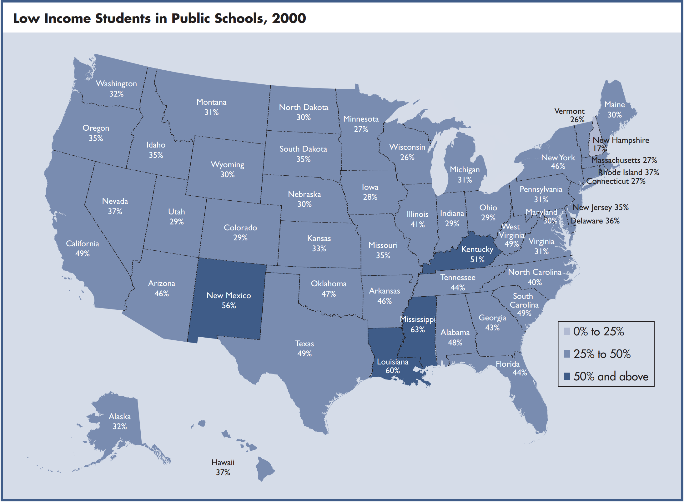 2007 – The report details how low-income children constitute a majority of the students in the public schools of the South, and that the South is the only region in the nation where low-income students are 50 percent or more of public school enrollment.